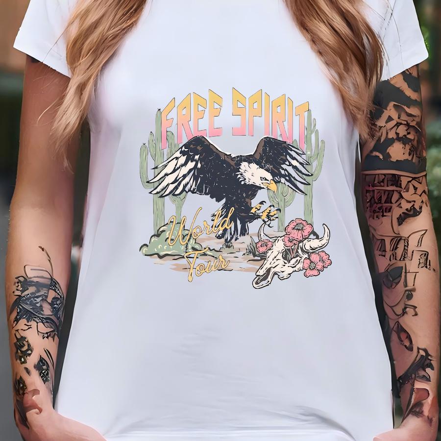 Free Spirit Eagle Tee: Distressed Boho Shirt T-shirt