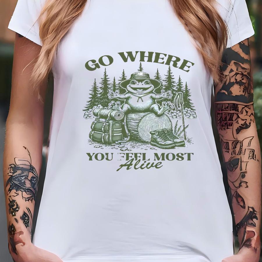 Go Where You Feel Most Alive Hoodie: Vintage Outdoorsy Frog Hiking Tee T-shirt