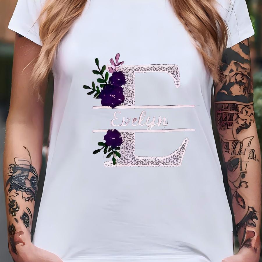 Baby Gown Set: Organic Cotton Knit, Floral Letter Name Machine -coming Home Gown-purple Gown-girl Baby Shower Gift T-shirt
