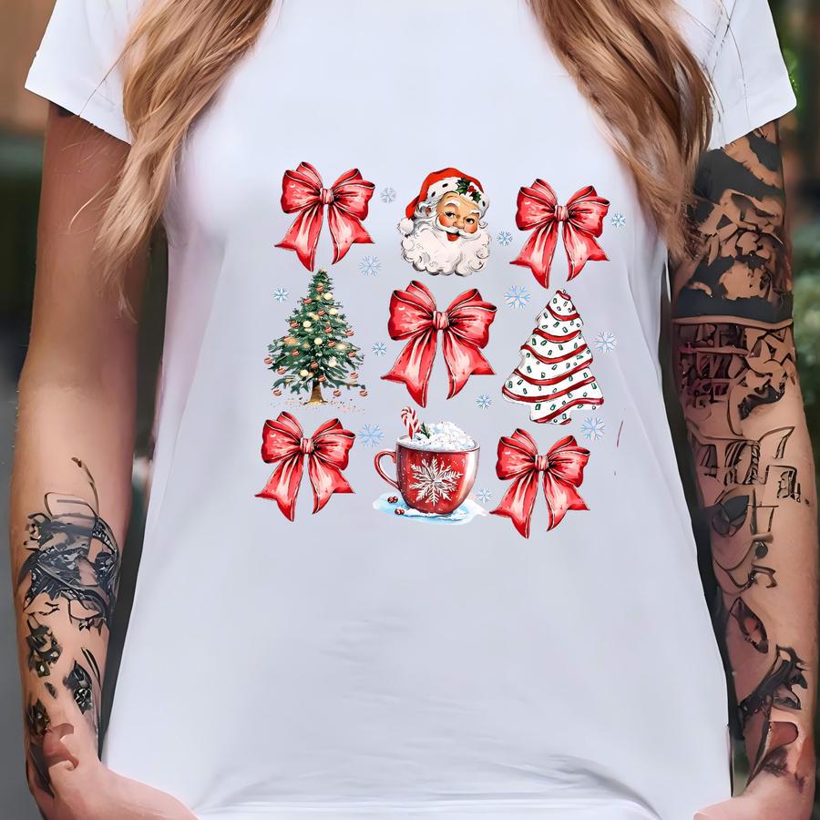 Christmas Coquette Bow Sweatshirt: Retro Holiday Crewneck T-shirt