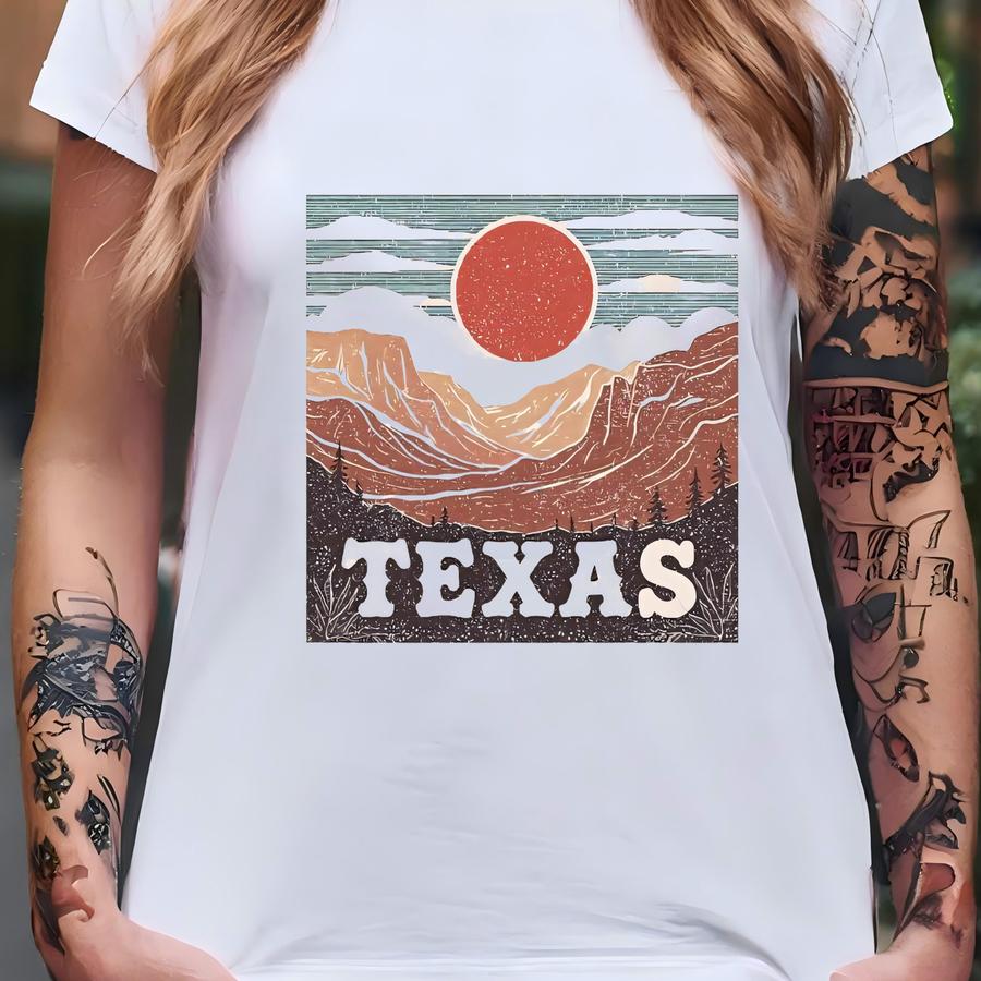Texas Mountains Retro Hoodie: Western Graphic Tee, Outdoors Adventure T-shirt