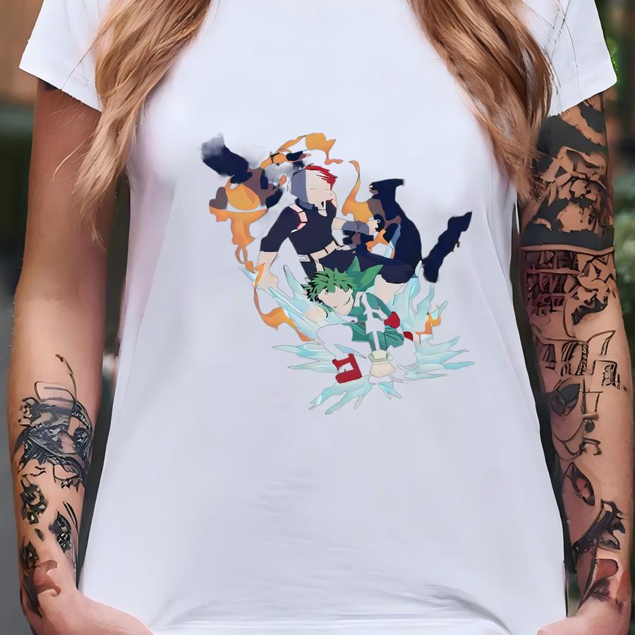 Anime Washed Shirt: 100% Full Cowling-inspired Design, Half-ice Half-fire Tshirt T-shirt