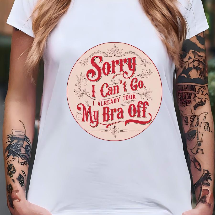Funny Slogan Hoodie: Sorry I Can't Go, Bra Off - Retro Style T-shirt