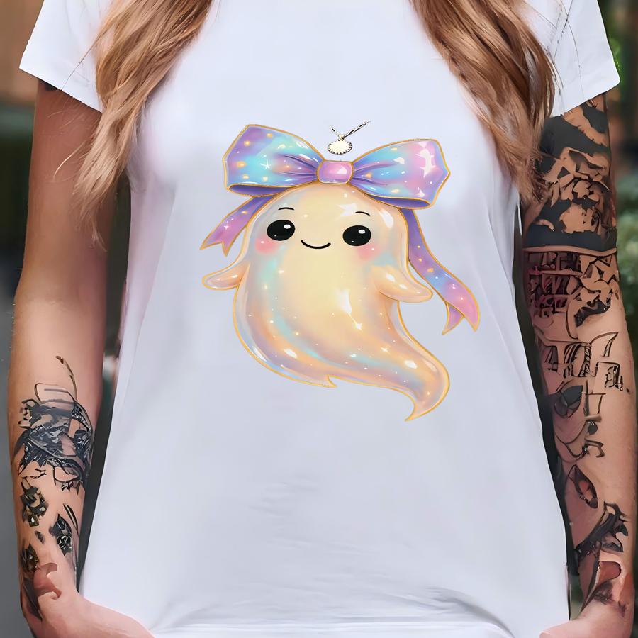 Cute Shimmery Ghost Iridescent Halloween Shirt, Cute Girly Ghost Shirt, Halloween Gift For Her, Coquette Ghost Gift Tee, Vintage Halloween T T-shirt