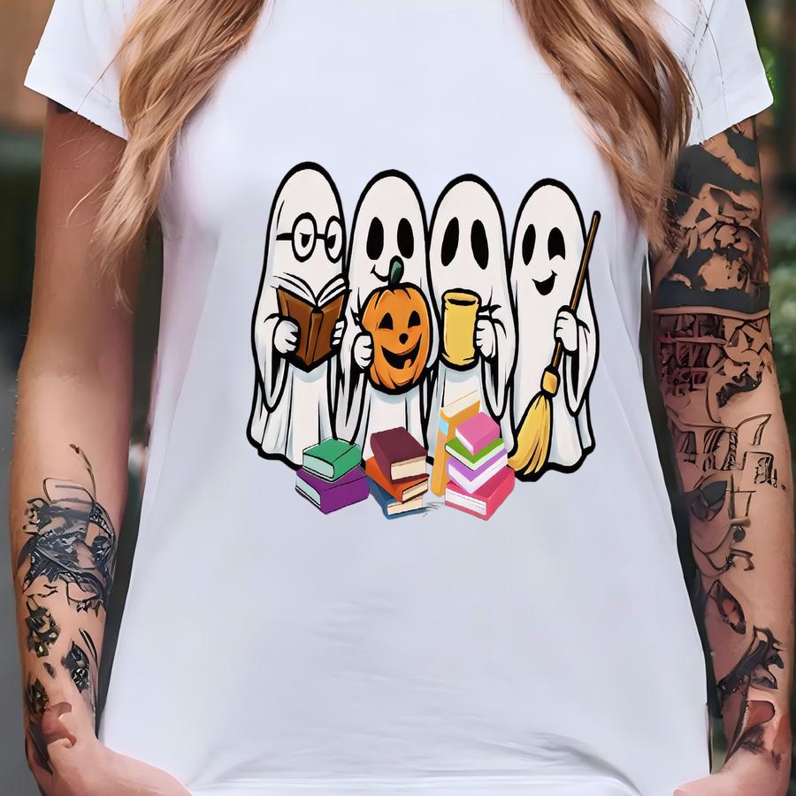 Sbook-y Cute Ghost Shirt, Ghost Halloween Tee, Reading Books Shirt, Retro Halloween Book Shirt, Book Lover Tee, Halloween Librarian Shirt T-shirt