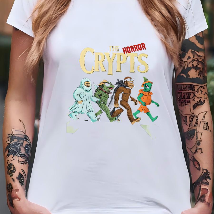 The Horror Crypts Funny Alien, Bigfoot, Yeti And Lizard Halloween Tee, Funny Bigfoot Meme Gift Tote, Cryptid Halloween Tee T-shirt