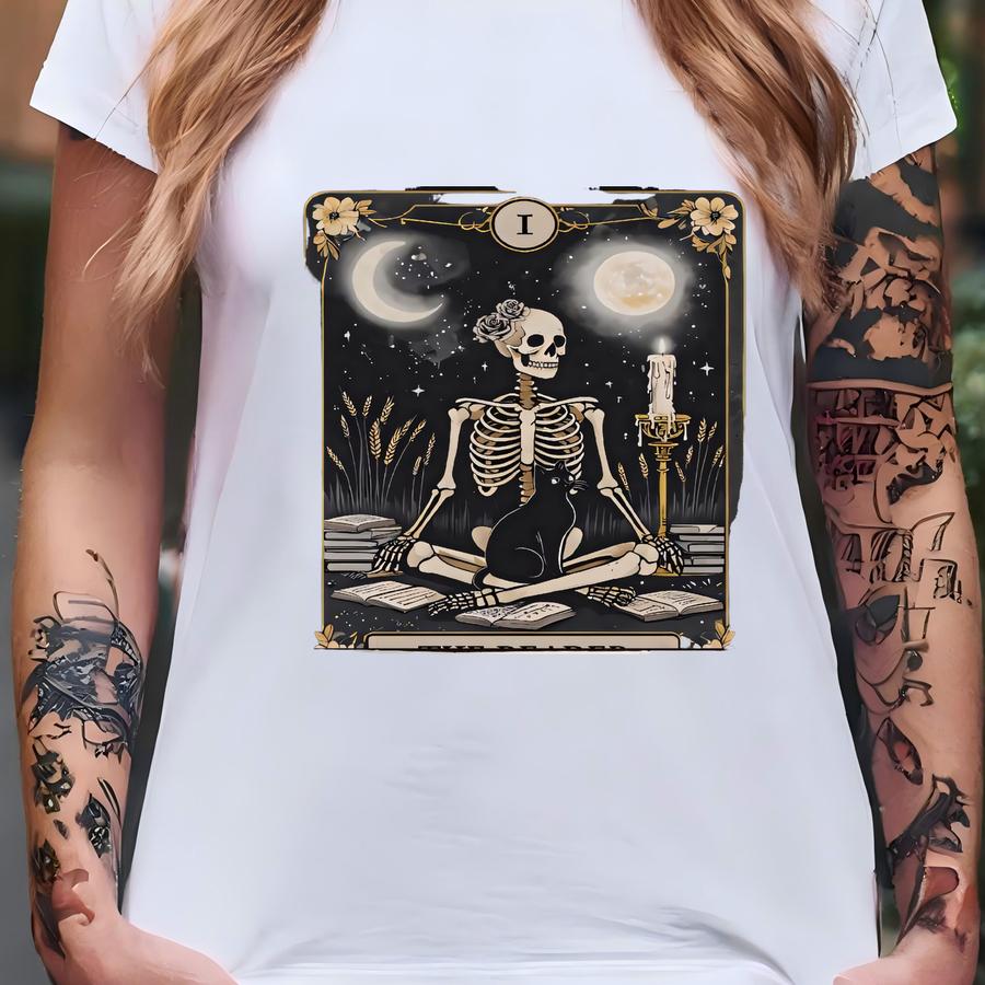 The Reader Tarot Card Front And Back Printing Shirt, Skeleton Reading Hoodie, Book Lover Gift For Women, Book Lover Tee, Tarot Card Shirt T-shirt