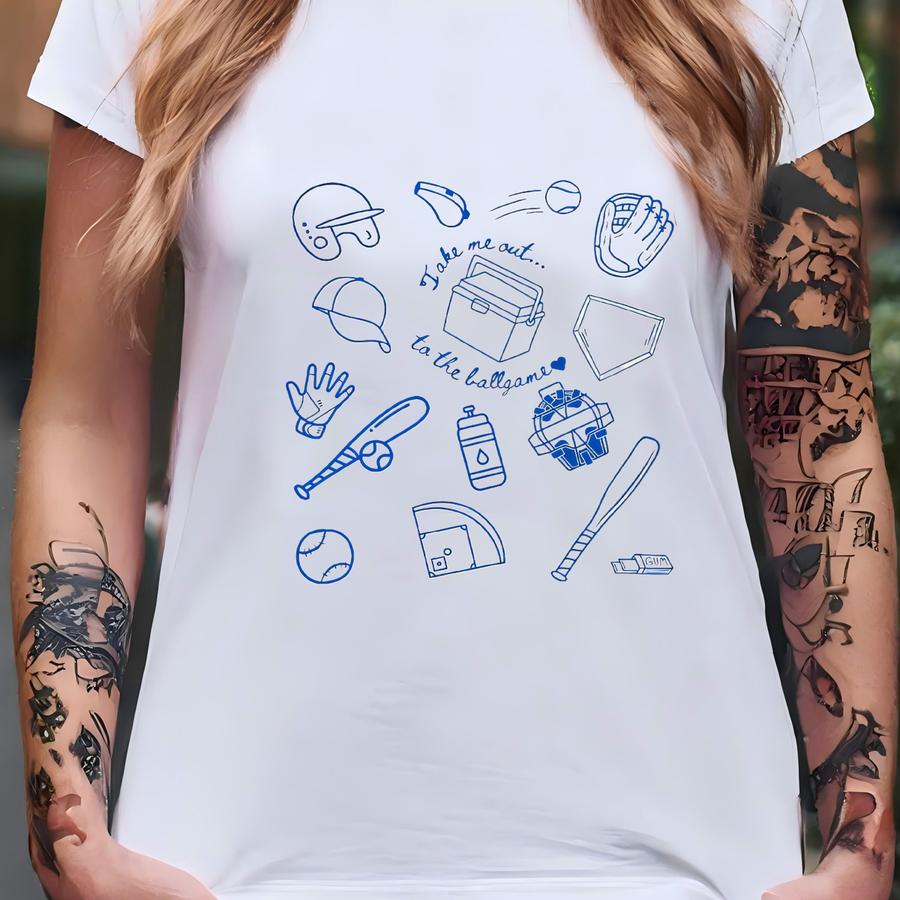 Take Me Out To The Ballgame Vintage Doodle Baseball Hoodie, Baseball Fan Gift, Baseball Wife Tee, Comfort Colours Baseball T, Baseball Gift T-shirt