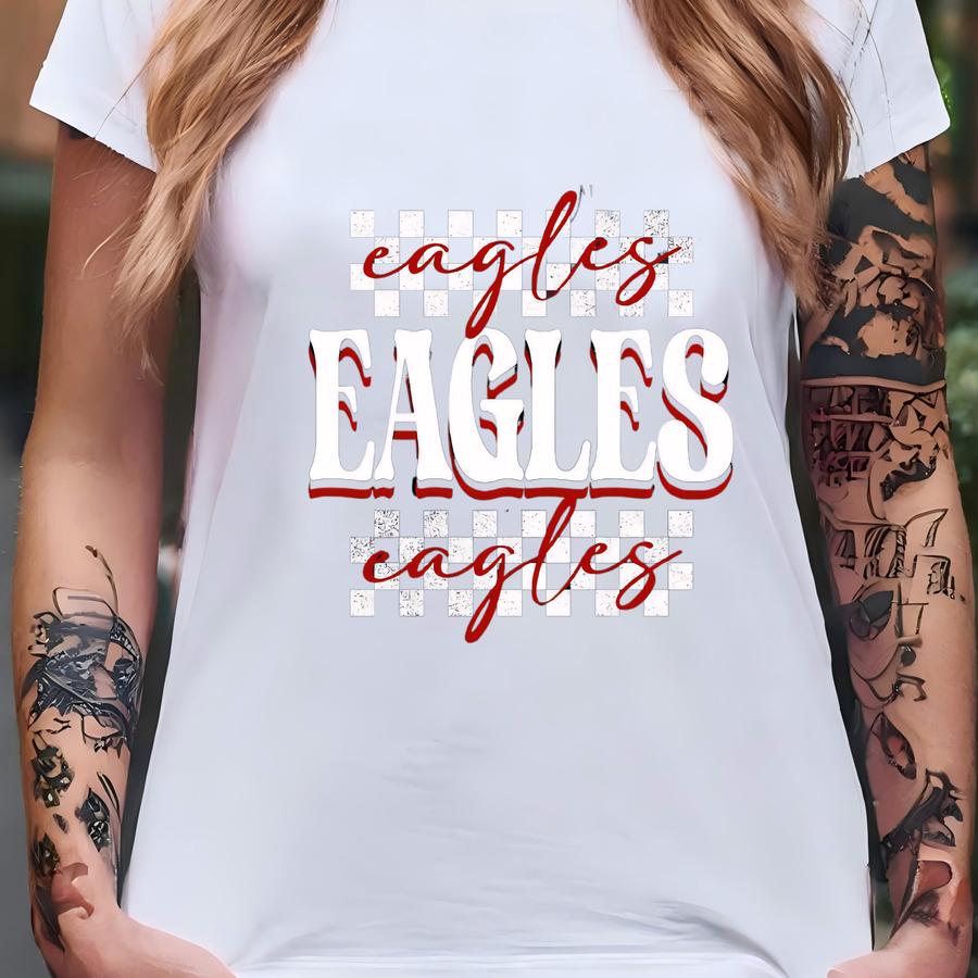 Eagles Shirt Custom School Shirt Eagles Sweatshirt Custom Mascot Shirt Game Day Shirt Checkered Print Shirt Eagles Hoodie School Spirit Tees T-shirt