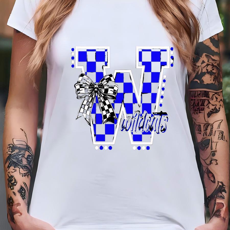 Wildcats Shirt Checkered Wildcats Shirt School Spirit Shirt Mascot Shirt Coquette Bow Shirt Sports Shirt Game Day Hoodie Wildcats Sweatshirt T-shirt