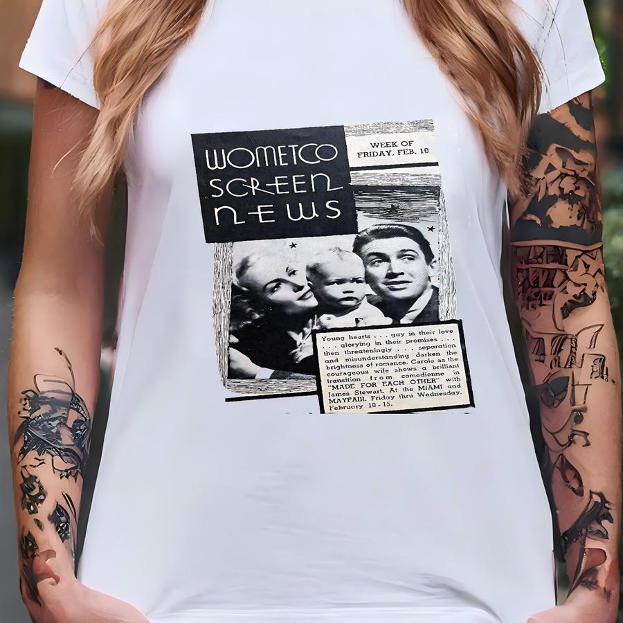 Screen News, Feb 1939 | Wometco Movie Theaters, New Releases | Boris Karloff, John Wayne, Jimmy Stewart | Hollywood History, Memorabilia T-shirt