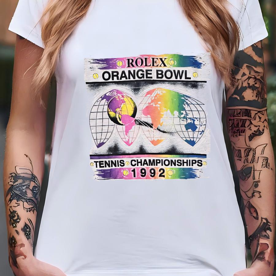 Rolex Vintage 90s Tennis Orange Bowl Championships Hoodie - Single Stitch Hanes Heavyweight Tee - Men's Size : Large ( L ) - T-shirt
