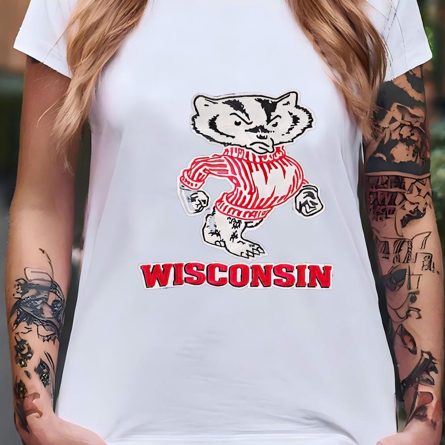 Badgers Vintage 90s Jeff Hamilton Leather Varsity Jacket - University Bomber Coat - Men's Size : Large ( L ) - T-shirt