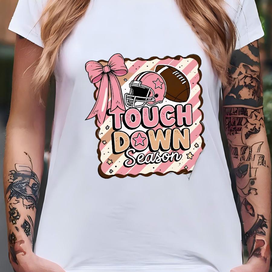 Touch Down Season Shirt, , Coquette Bow Football Shirt, Football Mom Shirt, Football Lover Shirt, Sports Mom Shirt, 163897 T-shirt