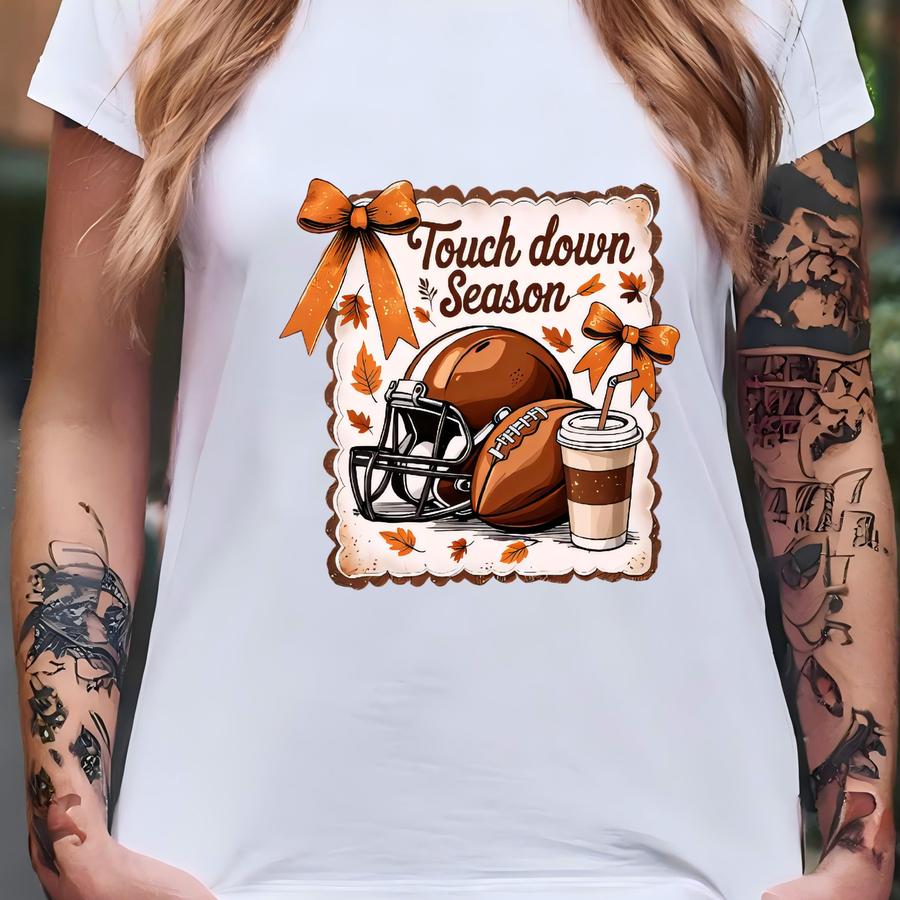 Touch Down Season Shirt, , Coquette Bow Football Shirt, Football Mom Shirt, Football Lover Shirt, Sports Mom Shirt, 163899 T-shirt