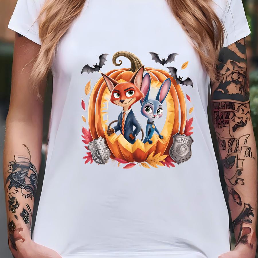 Zootopia Halloween Shirt, , Nick Wilde Judy Hopps Pumpkin Tee, Cute Halloween Shirt, Spooky Cartoon Animal Tee, 163857 T-shirt