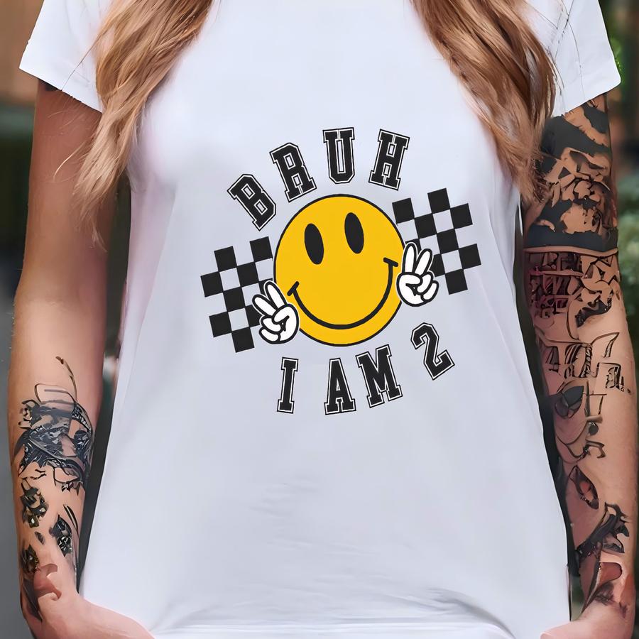 2nd Birthday Svg, Png, Eps, Dxf, Jpg, Bruh I Am Two , Retro Checkerboard Second Birthday Sublimation, Groovy Two Years Old Cut File T-shirt
