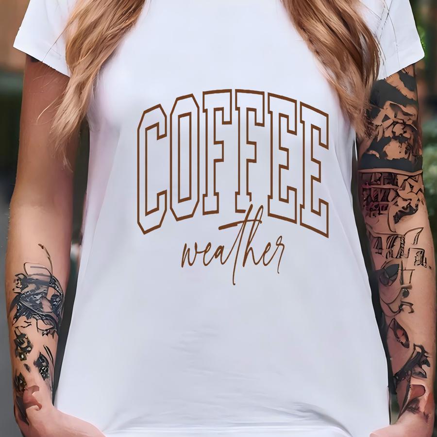 Coffee Weather Svg, Png, Dxf, Jpg, Eps, Coffee Weather Arched Varsity Shirt Sublimation, Vintage Autumn , Retro Fall Cut File T-shirt