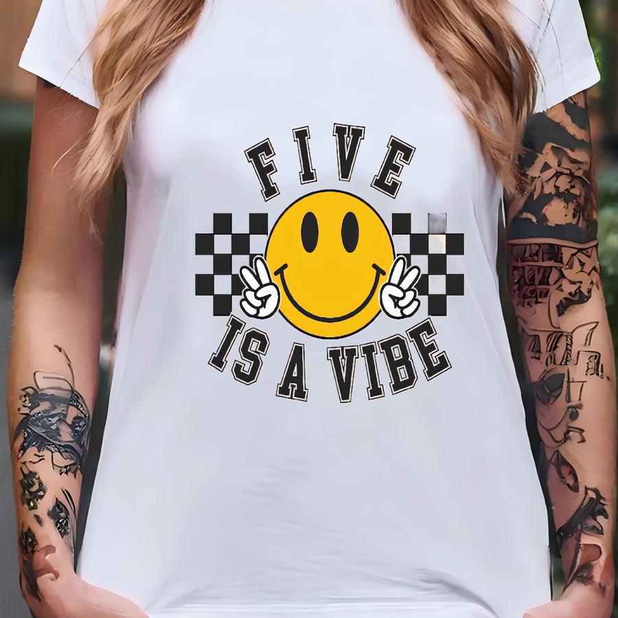 Five Is A Vibe Svg, Png, Eps, Dxf, Jpg, Groovy 5th Birthday , Retro Checkered Fifth Birthday Sublimation, Turning 5 Kid Cut File T-shirt