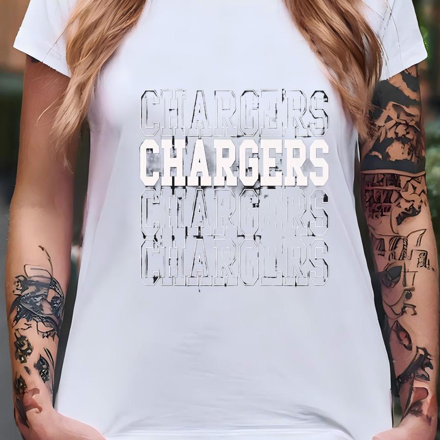 Chargers Svg, Png, Dxf, Eps, Stacked Block Letter Chargers Shirt Design Sublimation, Chargers Team Spirit School T-shirt