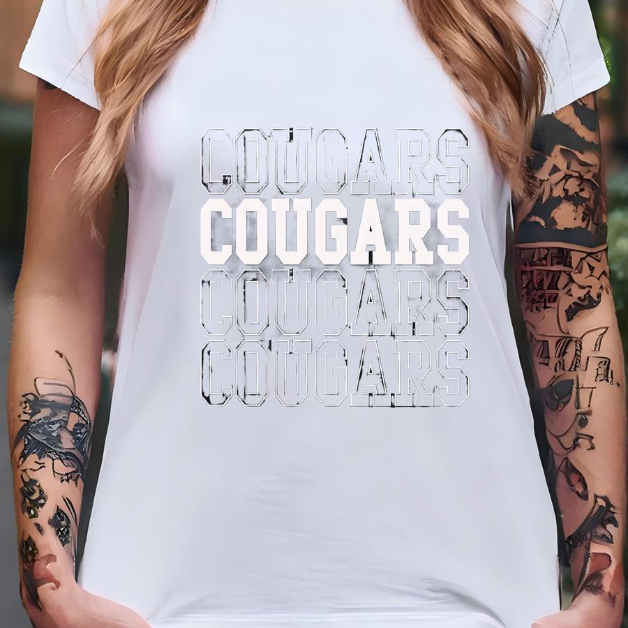 Cougars Svg, Png, Dxf, Eps, Stacked Block Letter Cougars Shirt Design Sublimation, Cougars Team Spirit School T-shirt