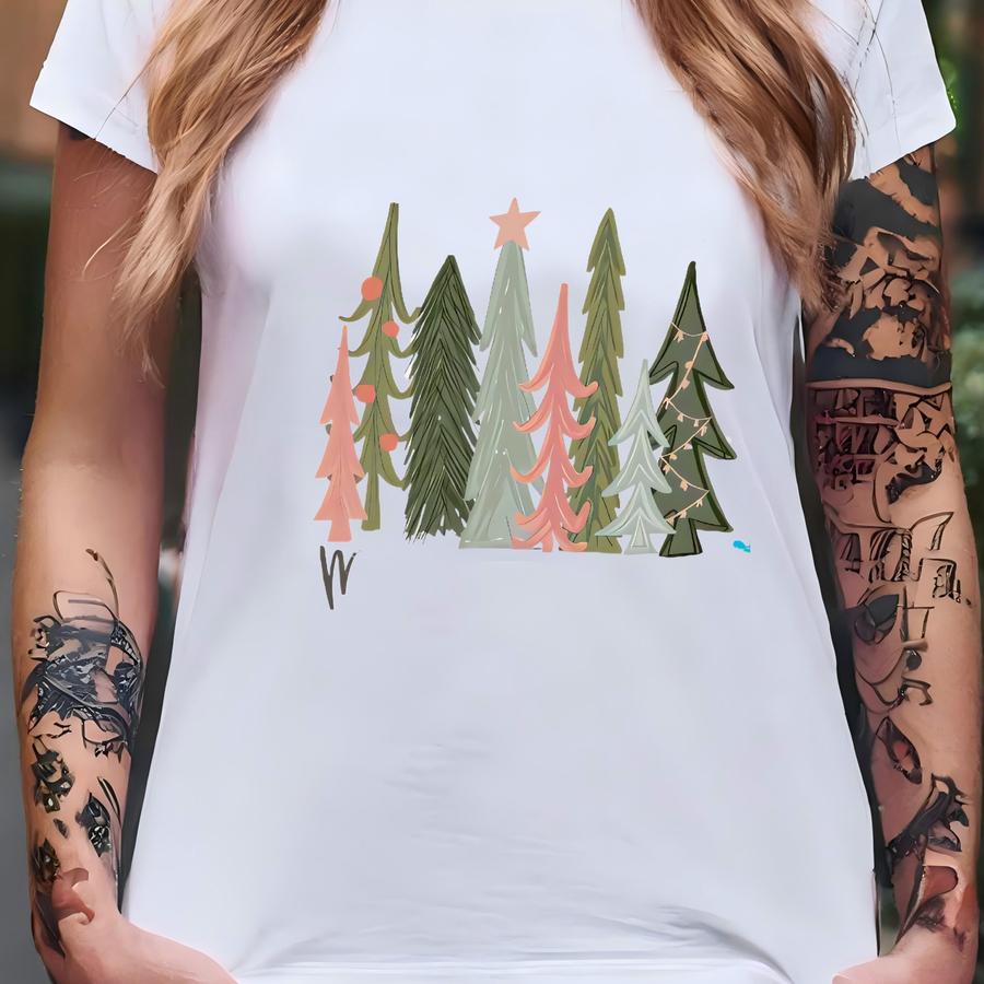 Cute Christmas Sweater For Women, Merry Christmas Pink Green Trees Sweatshirt, Unisex Fitting Sweatshirt T-shirt