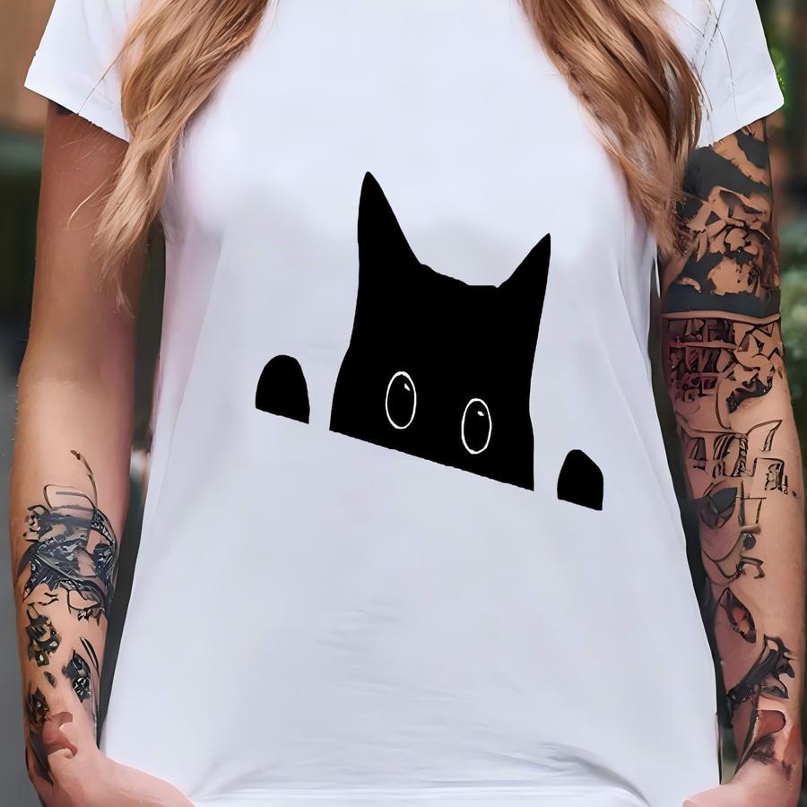 Cat Owner Gift: Peeking Black Cat Raglan Shirt, Three Quarter Sve Tshirt T-shirt