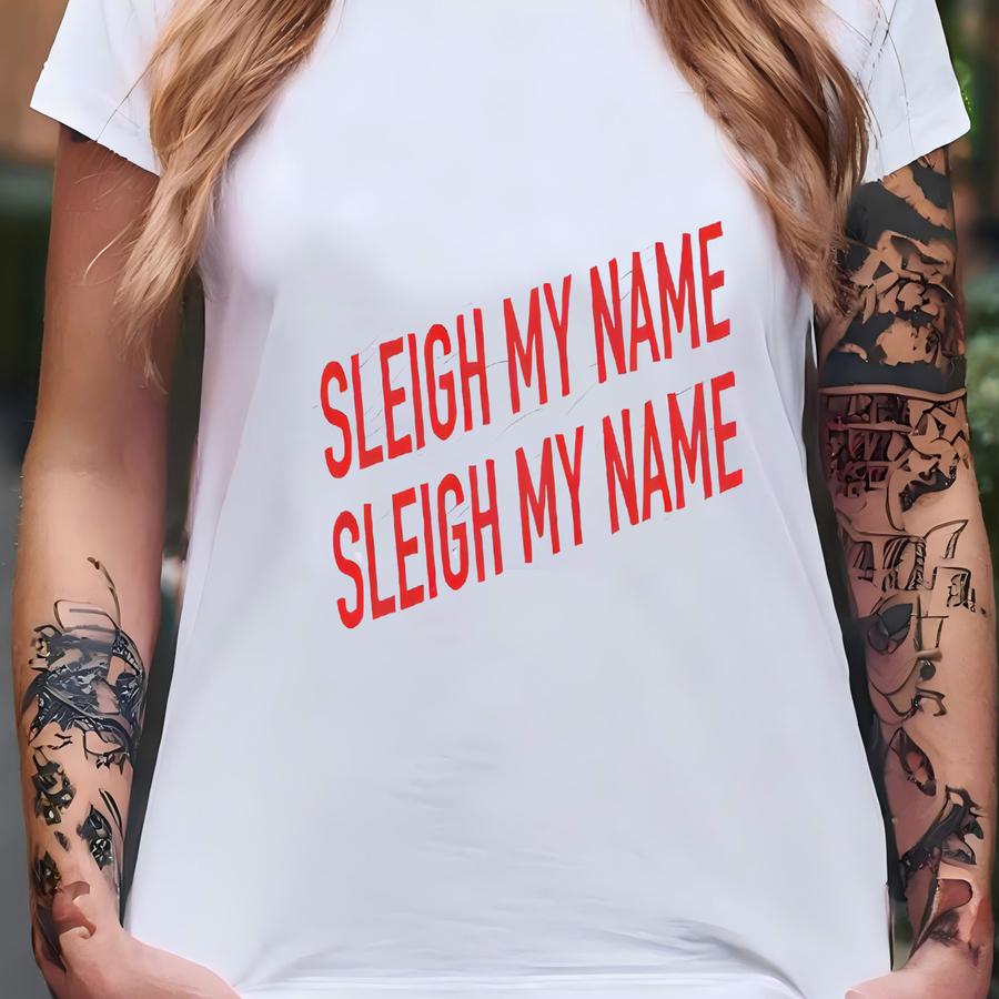 Sleigh My Name Christmas Party Shirt: Funny Holiday Pun Graphic Tee T-shirt