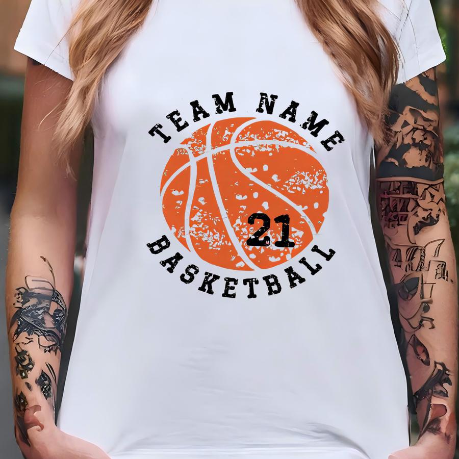 Distressed Basketball Hoodie: Personalized Team Number Graphic Tee T-shirt