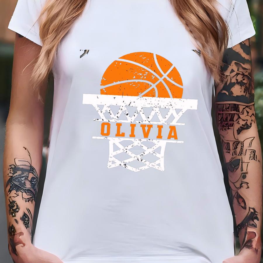 Distressed Basketball With Custom Name Sweatshirt, Personalized Mom Game Day Sweater T-shirt