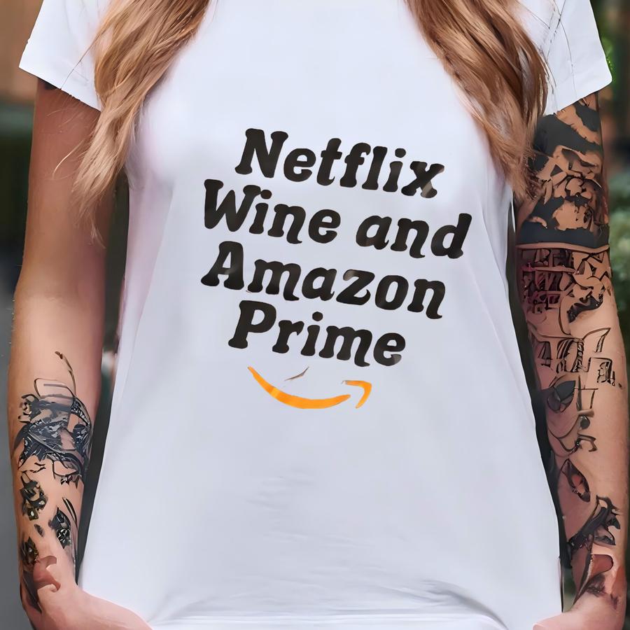 Funny Shirt | Funny Mom Shirts | Shirts With Sayings | Netflix Wine And Prime Shirt | Bella And Canvas T-shirt