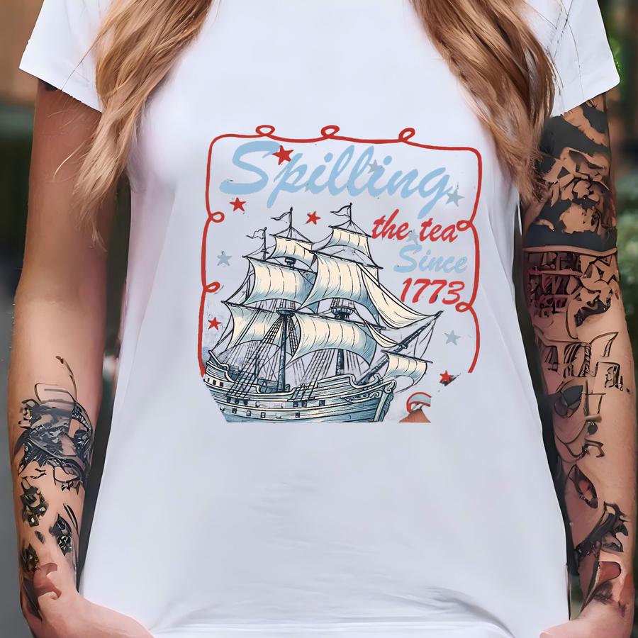 Funny 4th Of July Crewneck Sweatshirt: Spilling The Tea - Usa T-shirt