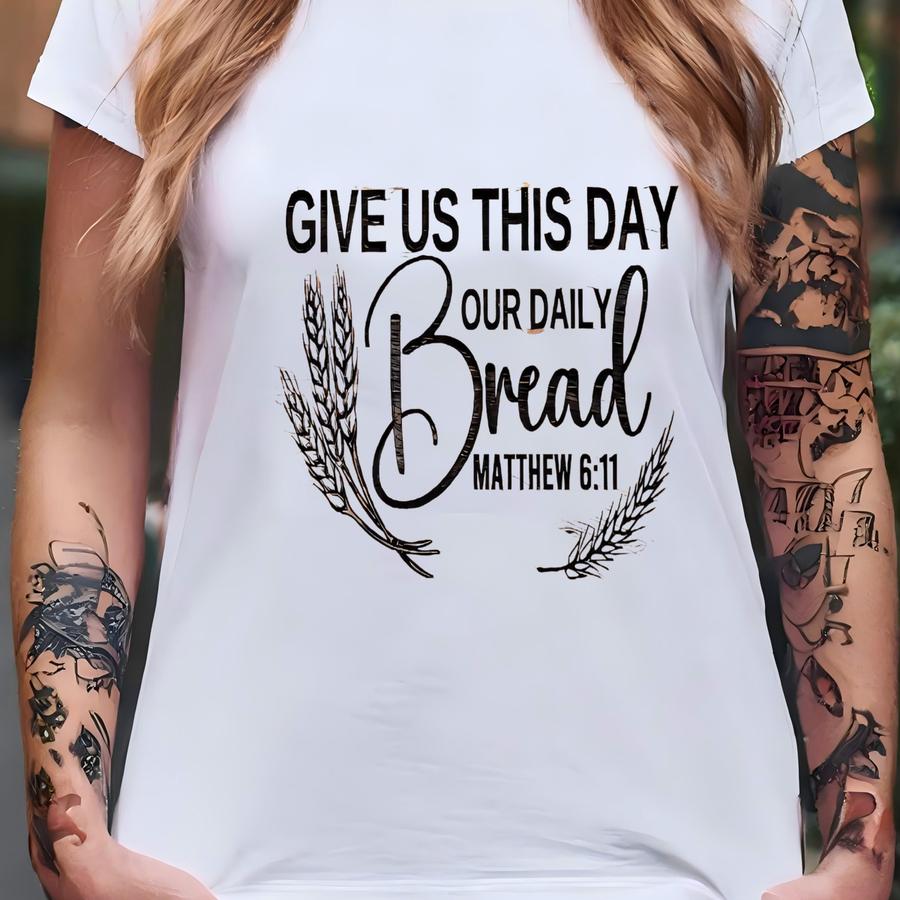 Engraved Acacia Cutting Board, Give Us This Day Our Daily Bread, Matthew 6:11 Cutting Board, Wood Cutting Board, 16 T-shirt