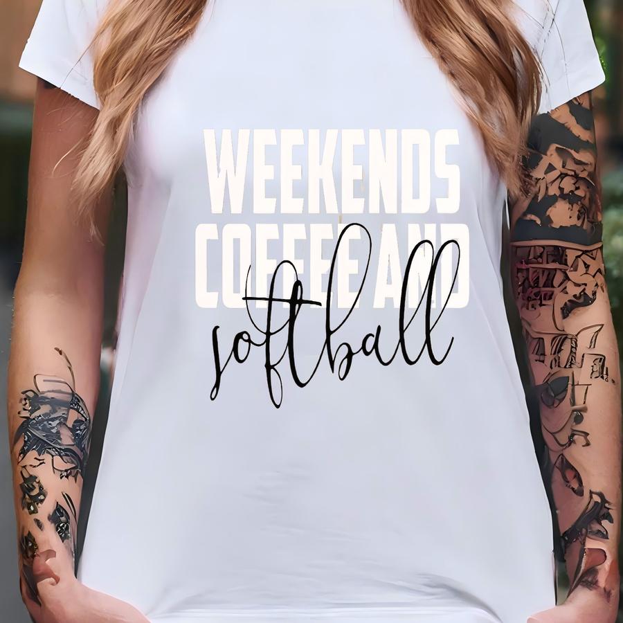Weekends Coffee And Softball Shirt, Sweatshirt, Hoodie, Long Sve, Gift, Softball Player, Softball Cheer, Softball , Softball Mom T-shirt