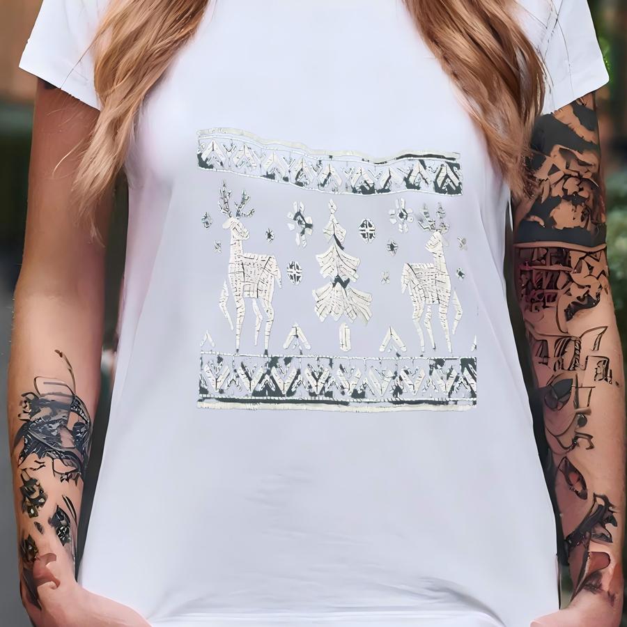 Christmas Sweatshirt, Nordic Reindeer Holiday Crewneck T-shirt