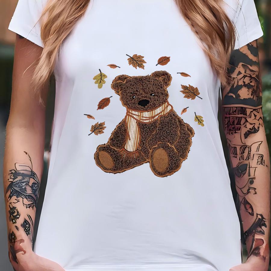 Fall Teddy Bear Sweatshirt, Crewneck, Autumn Apparel T-shirt