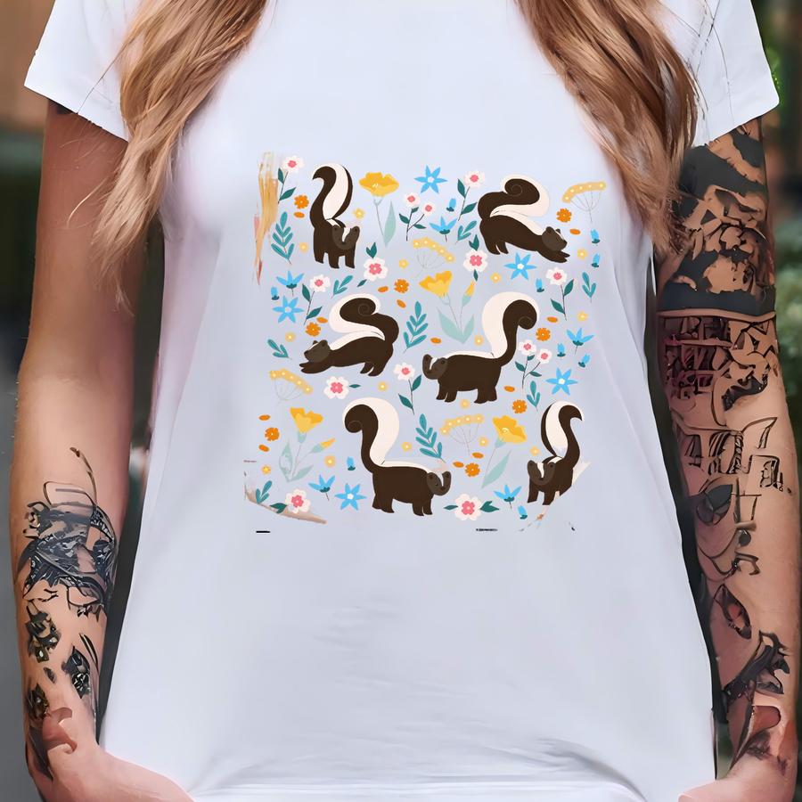 Skunk Shirt Cottage Core Clothes Cottagecore Clothing Botanical Shirt Cute Skunk Lover Gift Scandinavian Wild Animal Shirt Folk Art Shirt T-shirt