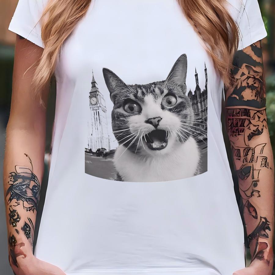Black And White Surprised Cat In London Mug 11oz Londoner Gifts T-shirt