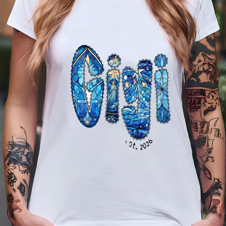 Christmas Gigi Sweatshirt With Grandkids Names, Gigi Gift From Grandchildren, New Grandma Gift, Xmas Gift For Gig, Stained Glass Christmas T-shirt