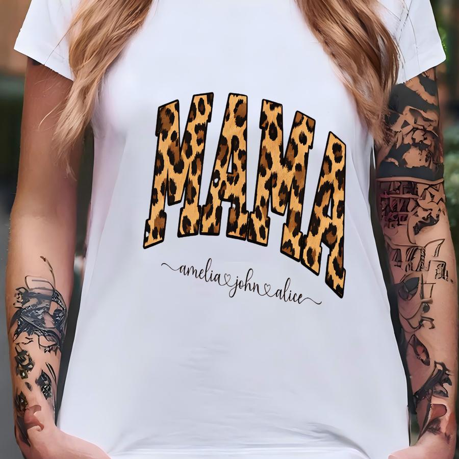 Custom Leopard Mama Shirt, Aesthetic Gift For Mom, Leopard Print Mama Shirt, Gift For Mother, Mom To Be, Baby Shower Gift T-shirt