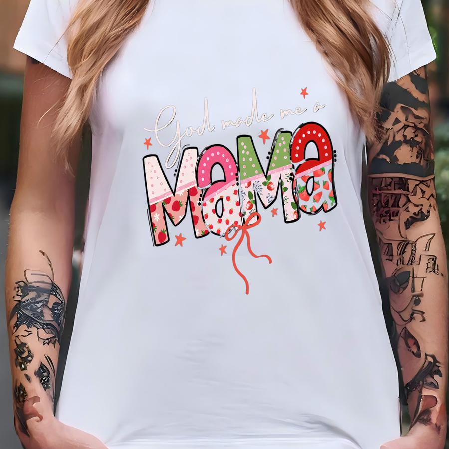 Comfort Color Mama Tank Top, God Made Me A Mama, Gift For Mom Shirt, Christian Shirt, New Mom, Pregnancy Reveal Mama Shirt, Strawberry Shirt T-shirt