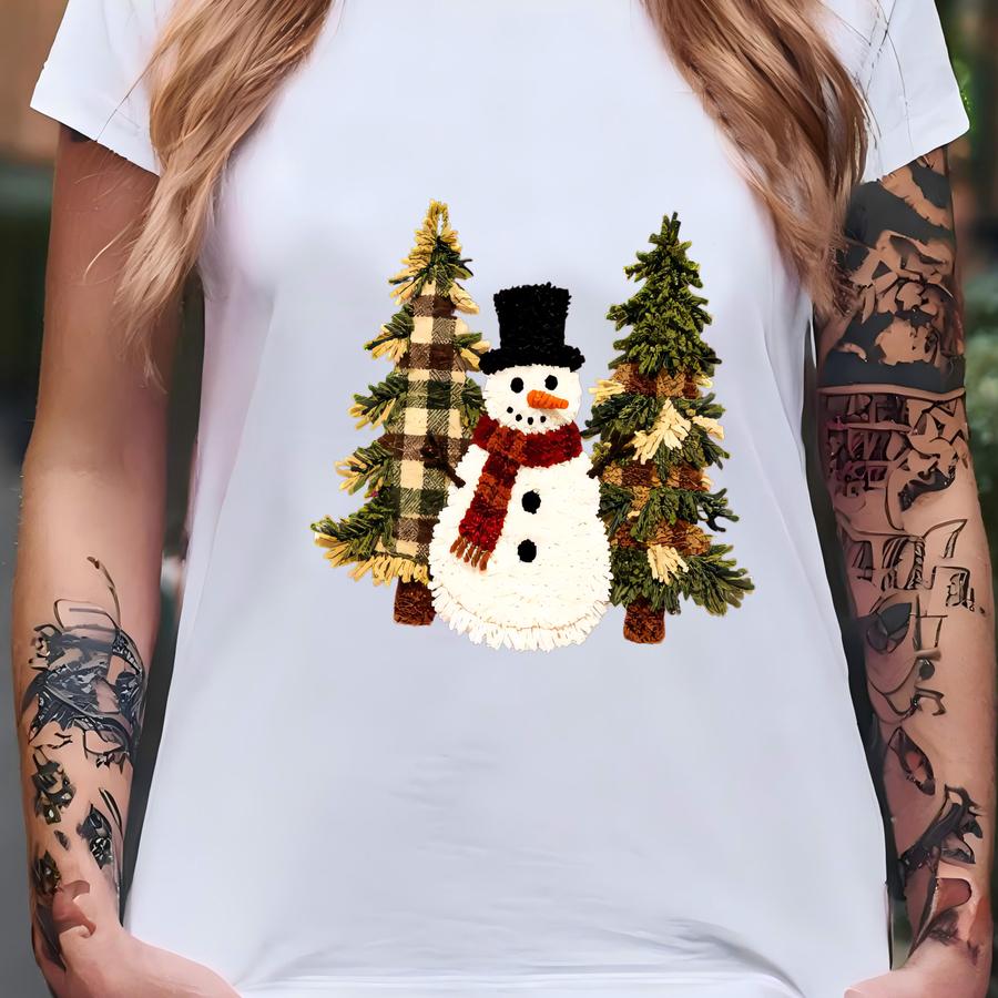 Faux Patchwork Snowman Hoodie, Patchwork Christmas Gift, T-shirt