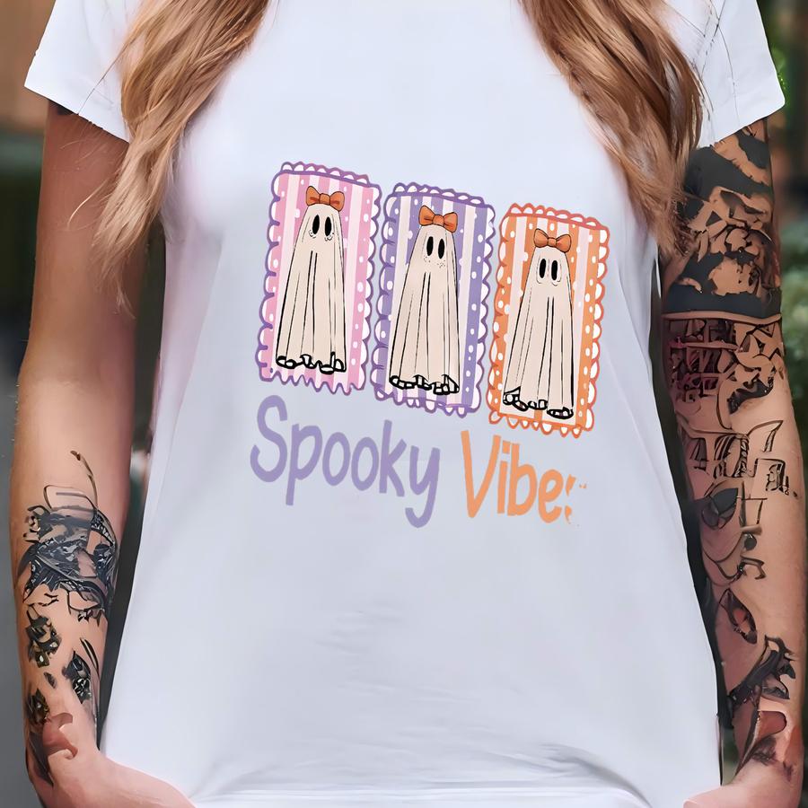 ® Spooky Vibes Shirt, Halloween Ghost Shirt, Spooky Season Tee, Girly Halloween Coquette Tee, Cute Ghost Shirt, Halloween Gift T-shirt