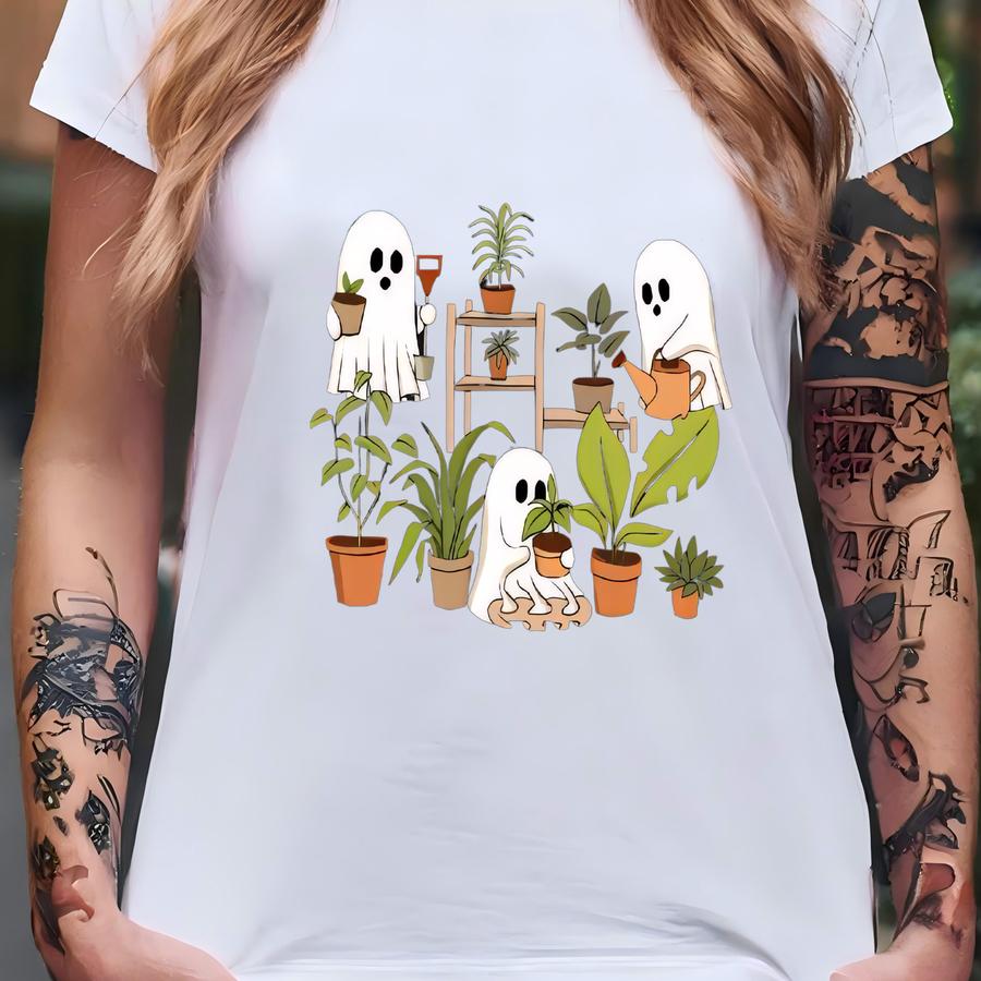 ® Womens Ghost Plant Shirt, Plant Lover Halloween Shirt, Plant Mom Shirt, Ghost Halloween Gift, Fall Flowers Lover Gift Shirt T-shirt