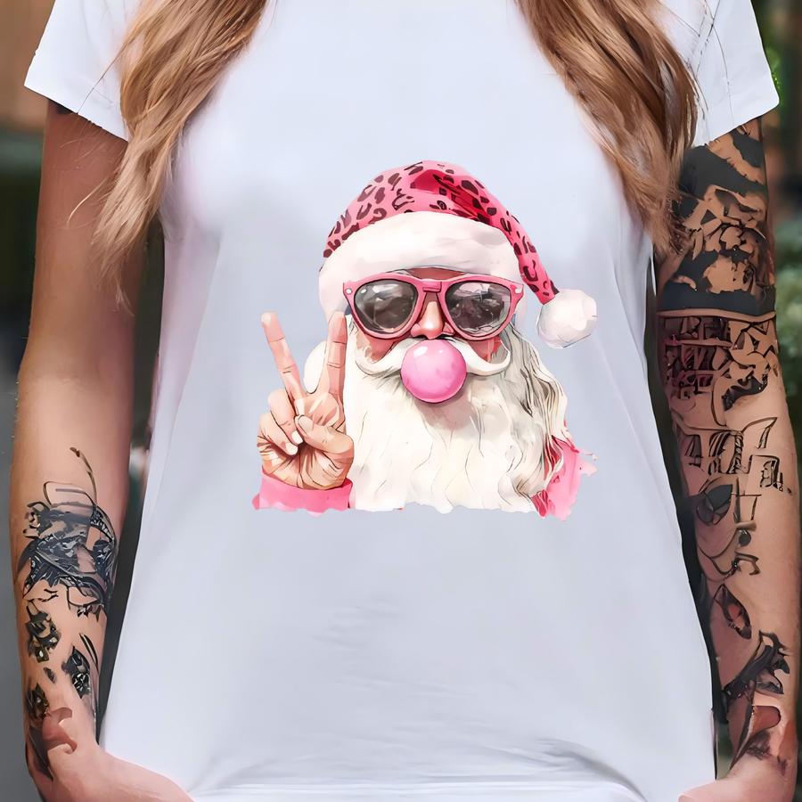 ® Santa Blowing Bubble Shirt, Funny Christmas Shirts, Pink Christmas Santa Hoodie, Funny Santa Tees T-shirt