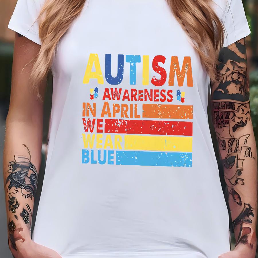 Autism Awareness Shirt, In April We Wear Blue For Autism Awareness Shirt, Support Autism Acceptance Inclusion, Autism Pride Hoodie T-shirt