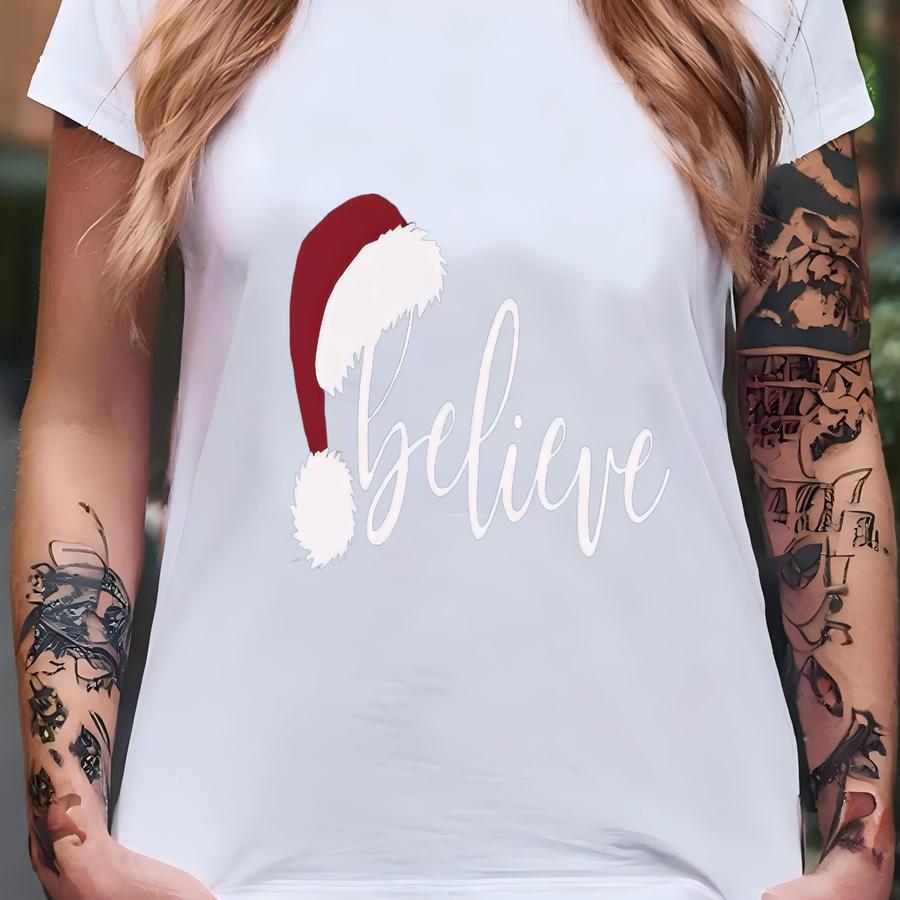 Believe Christmas Shirt, Christmas Family Shirts, Believe Santa Hat Hoodie, Xmas Party Shirts, Secret Santa Religious Gift T-shirt