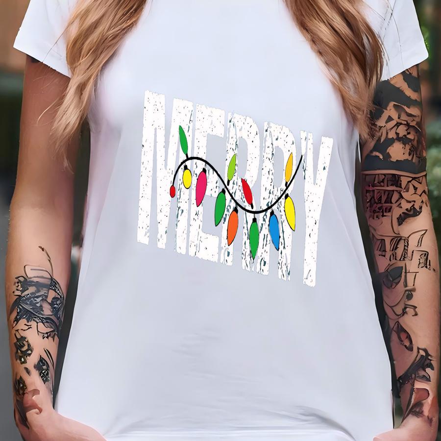 ® Merry Shirt, Christmas Lights Hoodie, Matching Family Holiday Tees, Retro Merry Crewneck T-shirt