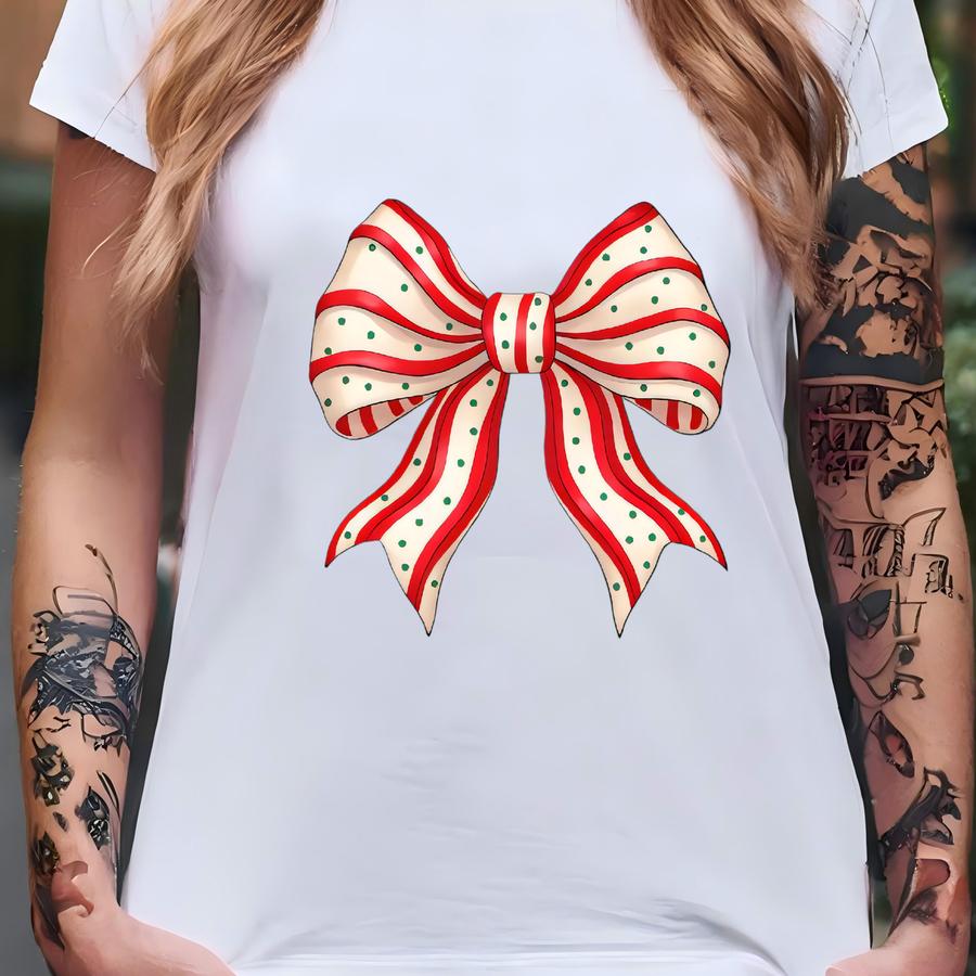 ® Christmas Cake Bow Shirt, Christmas Tree Cake Hoodie, Holiday Tshirt, Claus Red Bow Tees T-shirt