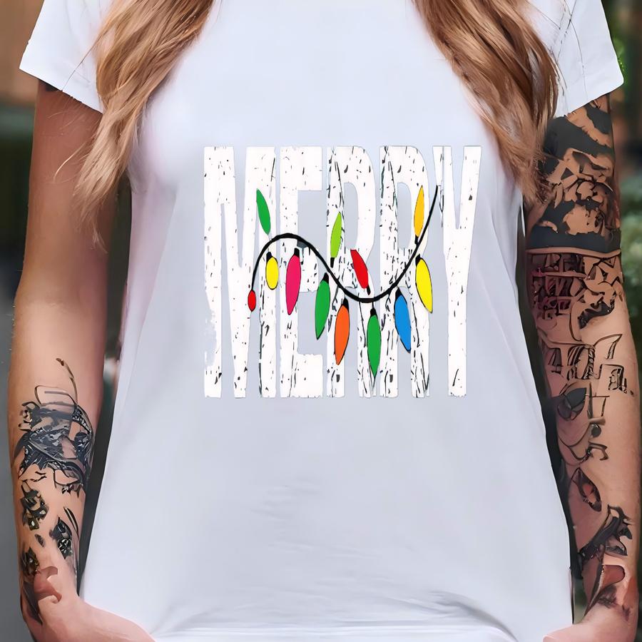 ® Merry Christmas Lights Shirt, Matching Family Holiday Shirts, Retro Merry Crewneck, Xmas Gift, Christmas Lights Hoodie T-shirt